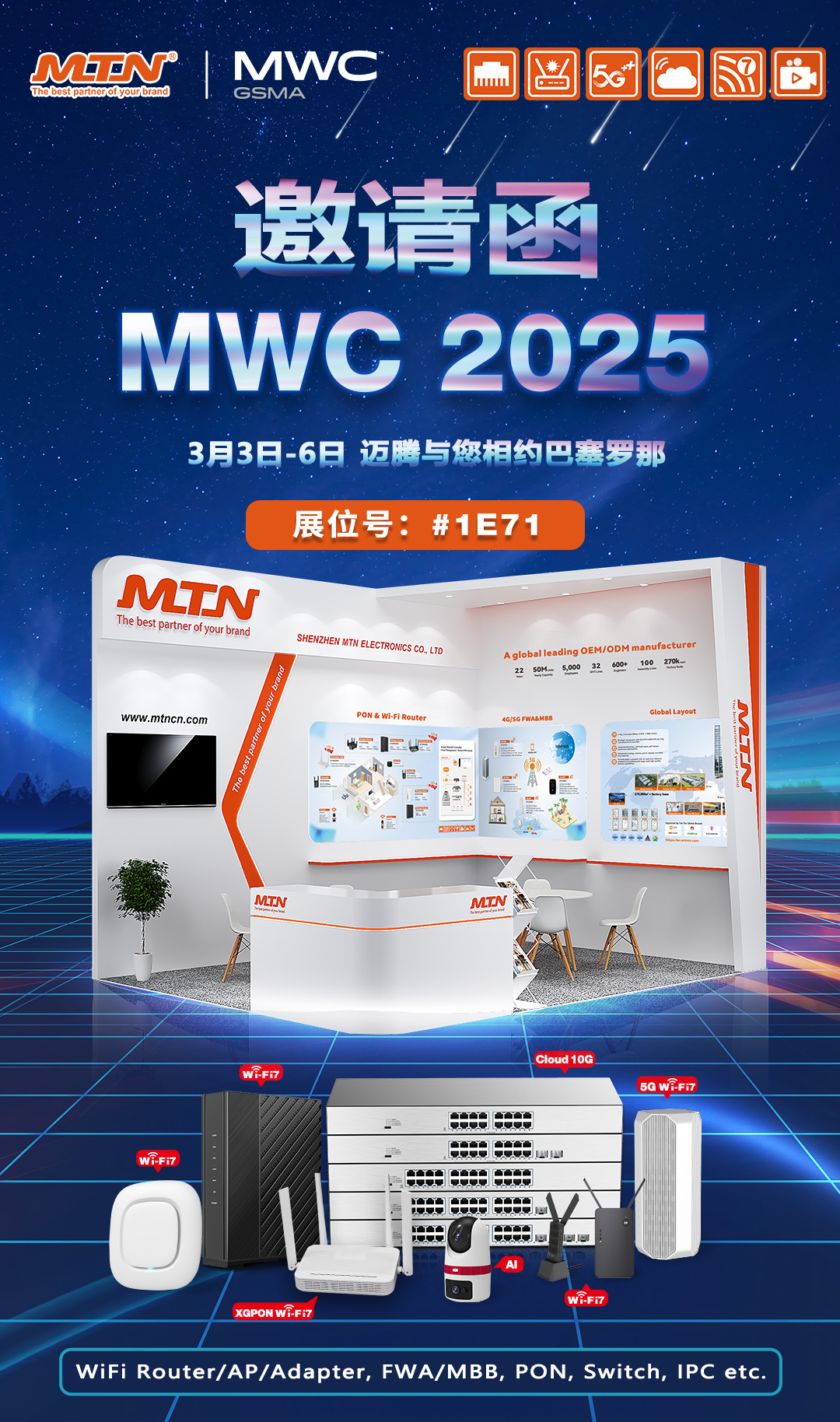 2025年世界移动通信大会(25mwc)盛大启幕在即,这是一场全球瞩目的通信行业盛会,迈腾电子携wi-fi 7 router、4g/5g fwa&mbb、ai-ipc等一系列产品和技术亮相。在此,我们诚挚地邀请您莅临我们的展位,一同探索通信科技的无限可能!