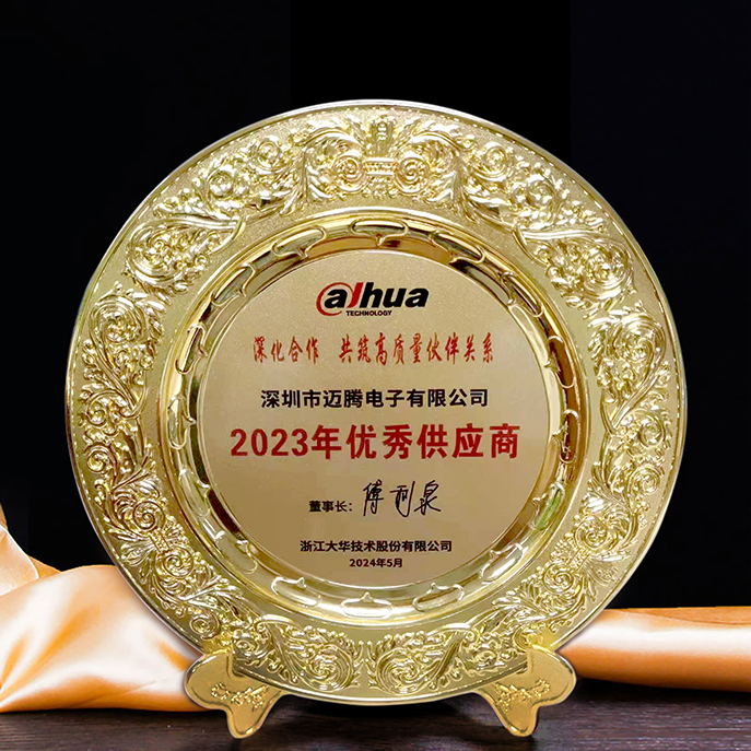 近日,大华股份隆重揭晓了“2023年优秀供应商”的名单,迈腾电子凭借其卓越的品质和持续的创新实力,荣获了这一殊荣。