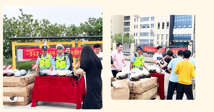 活动现场,工作人员为员工有序发放安全头盔,并详细讲解佩戴头盔的正确方法和重要性。仲恺交警大队的交警结合典型交通事故案例,进行了深入浅出的安全知识宣讲,向员工普及交通法规,提醒大家做到安全文明出行。