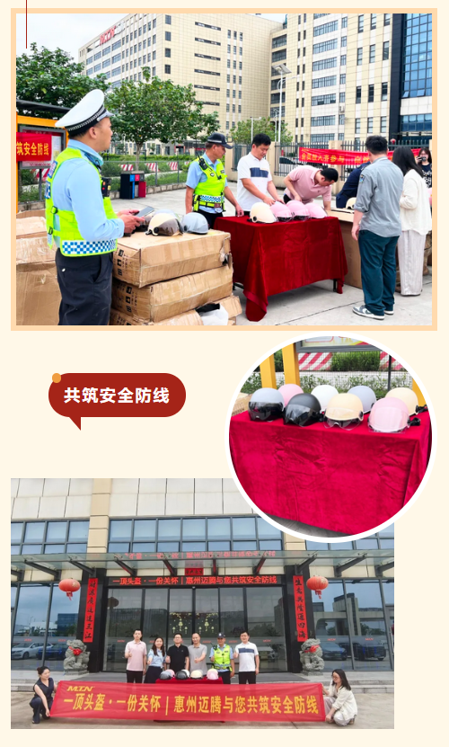 为切实保障员工出行安全,筑牢交通安全防线,近日,惠州迈腾联合陈江街道办事处、仲恺交警大队,共同开展“一顶头盔·一份关怀|惠州迈腾与您共筑安全防线”交通安全公益活动,以实际行动守护员工生命安全。